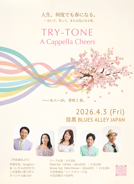 ◎2026年4/3(金)【TRY-TONE A Cappella Cheers@Blues Alley Japan】